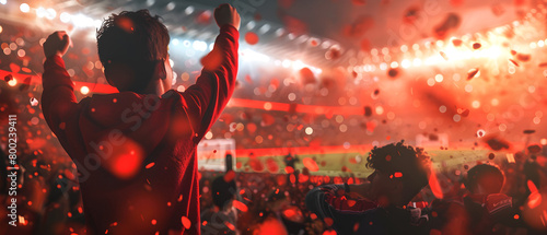 Happy Sport Emotional Football Fans on big stadium tribune.