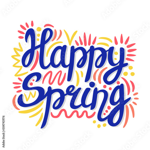 Happy spring lettering. Lettering phrase in vintage style isolated on white background.