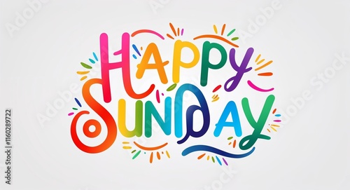 happy Sunday colorful calligraphic minimalist lettering art design on plain white background