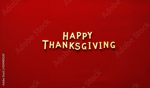 Happy Thanksgiving bold golden text on a vibrant red background