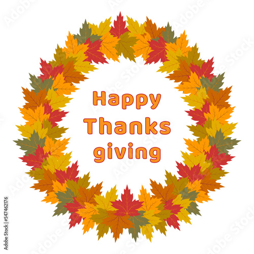 Happy thanksgiving day with autumn leaves. Color vector illustration.