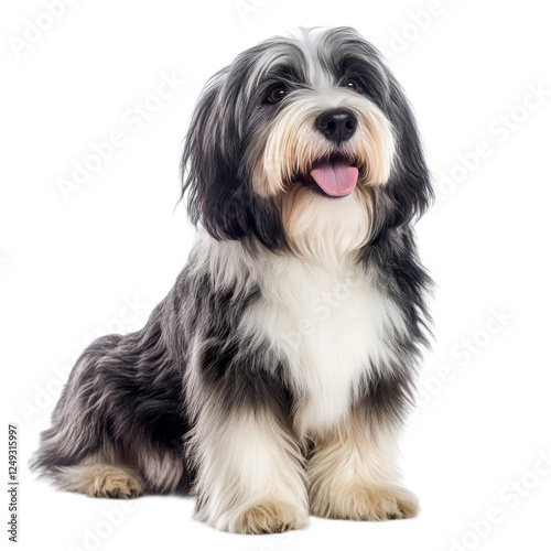 Happy Tibetan Terrier Sitting on White Background