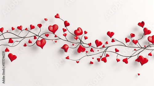 Happy valentines day calligraphy banner with red hearts isolated on transparent background
