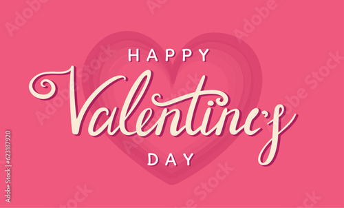Happy Valentine's Day card with lettering design and heart on the pink background. Vector illustration with love concept