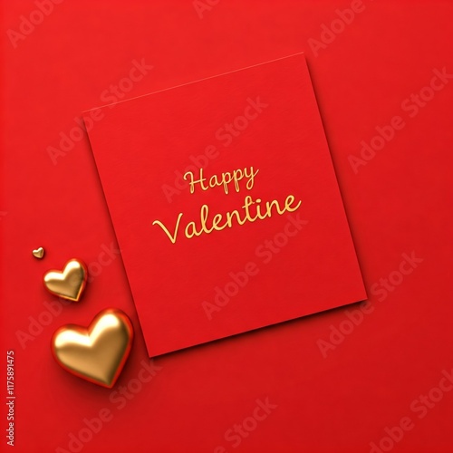 Happy Valentine's Day. Golden heart on a red background. Valentine card.