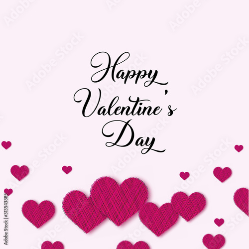 Happy Valentine's Day greeting card with flying red hearts. Vector.