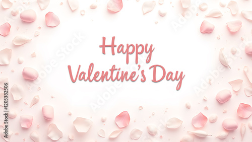 Happy Valentine's Day greeting card with pink rose petals
