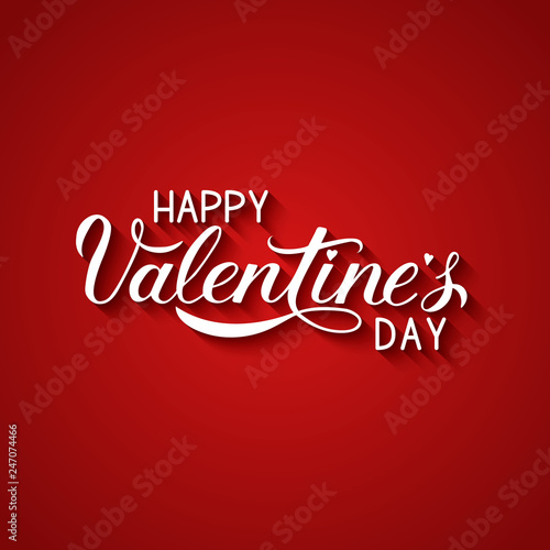Happy Valentine’s Day hand written on red background. 3d calligraphy lettering. Easy to edit vector template for Valentines day greeting card, party invitation, posters, flyer, banner etc.