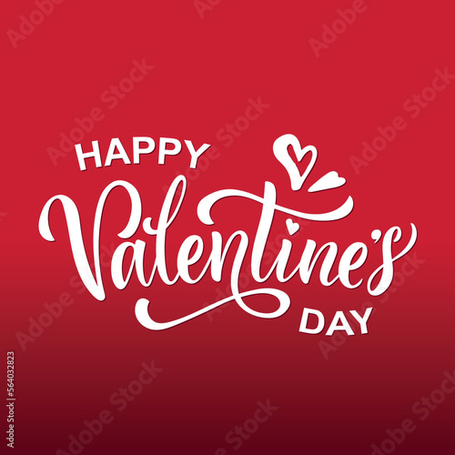 Happy Valentine's Day handwritten text. Hand lettering typography, modern brush ink calligraphy with romantic symbols. Vector colorful illustration. Concept for greeting card, banner, poster, print