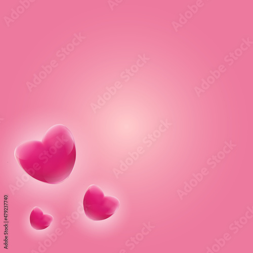 Happy Valentines Day header or sale banner. 3d pink hearts and pink background. Gift card, voucher design, poster template, place for text