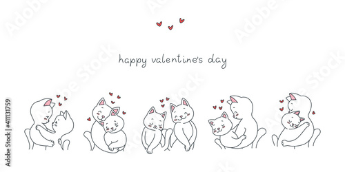 Happy Valentine's Day. Illustration of cute hugging cat couples on a white background. Vector 10 EPS.