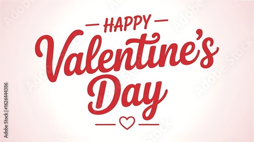 Happy Valentines Day Red Lettering with Heart on White Background for Holiday