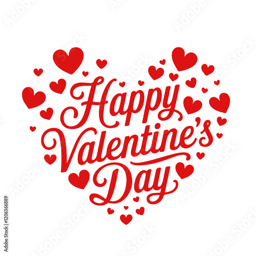Happy Valentine's day text, hand lettering typography, hearts with pink red. Vector illustration. Invitation, banner, t-shirt. Calligraphy text handwritten background. 14 February.