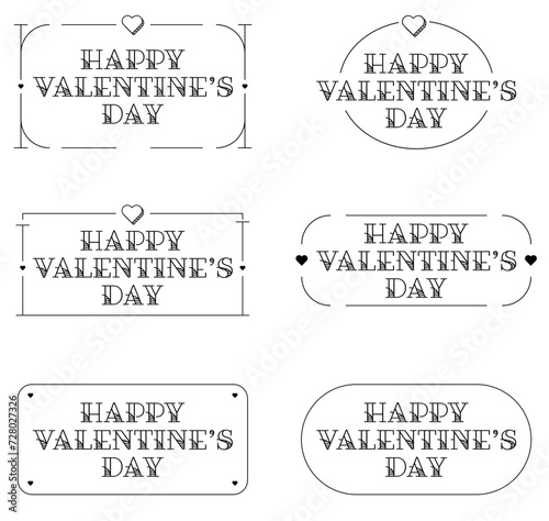 Happy Valentine's Day Type in Tattoo Style Font with Simple Heart Frame Lining Classic Vintage Style Design in Black and White