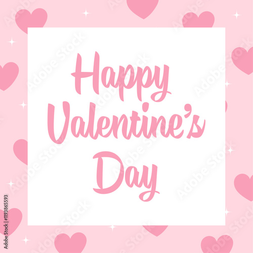 Happy Valentine’s day vector banner, template. Modern greeting card with lettering, pink hearts and stars. Romantic background.