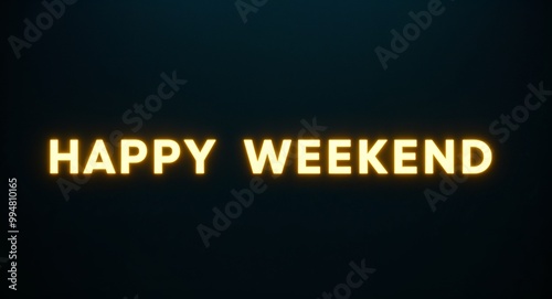 happy weekend word lettering with yellow glow on plain black dark background