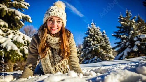Happy Woman in Winter Wonderland.