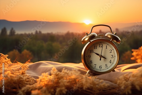 Happy woman waking up to alarm, enjoying the morning sunlight and stretching in bed