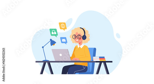 Happy woman working from home on laptop, perfect for website banners or blog posts about remote work.