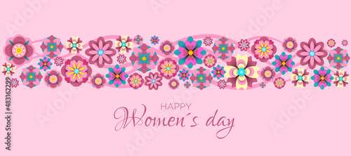Happy Women's Day. Elegant advertising banner with paper flowers to include text messages or congratulations