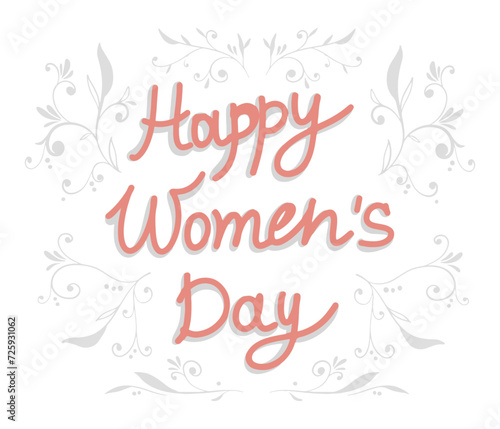 Happy Women's Day greeting card with hand drawn abstract elements on white background. Cute vector postcard for 8th March.