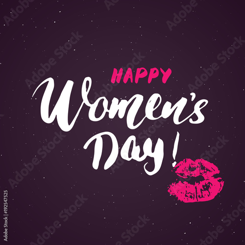 Happy Women's Day Hand letterings set. Holiday grunge textured retro design greeting cards vector illustration