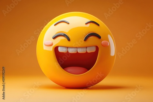Happy Yellow Emoji Laughs Widely With Blushing Cheeks