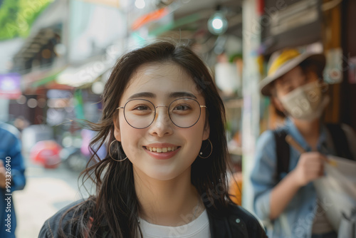 Happy young Asian woman organizing urban lifestyle group play and talk friendship day.