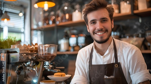 Happy Young Barista Working in a Cozy Cafe or Coffee Shop