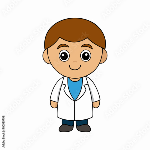 Happy young doctor cartoon isolated vector art Illustration