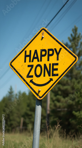 Happy Zone Sign with Smiley Face on a Rural Road