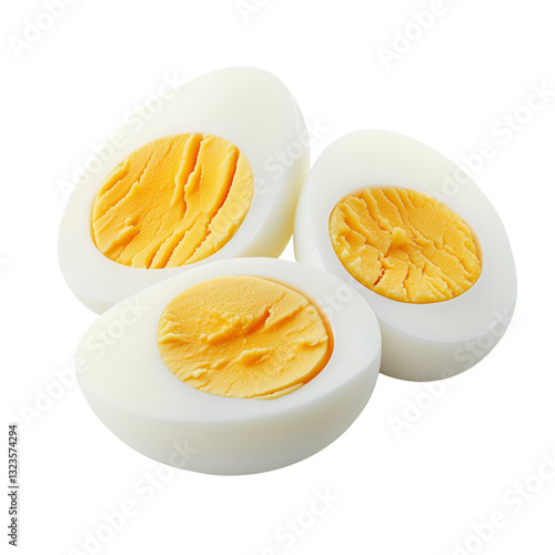 Hard-Boiled Eggs Cut in Half on Transparent Background