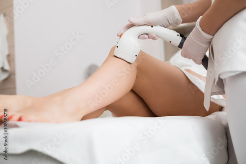 Hardware cosmetology. Laser hair removal on ladies legs.
