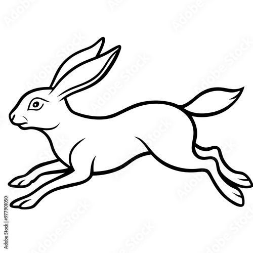 Hare mid-leap, with long ears and legs extended in a fast motion vector