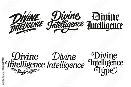 Harmonious Lettering Variations. Divine Intelligence. Set lettering. harmonious lettering variations of the same emblematic concept (Dynamic brushstroke