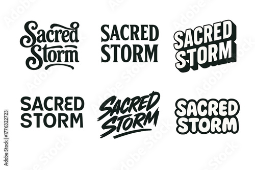 Harmonious Lettering Variations. Sacred Storm. Set lettering. harmonious lettering variations of the same emblematic concept (Whimsical curly type with