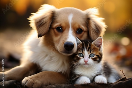 Harmony in fur a kitty and puppy create a heartwarming scene together