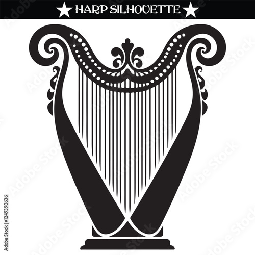 Harp musical instrument silhouette vector art illustration on white background. Vector eps 10