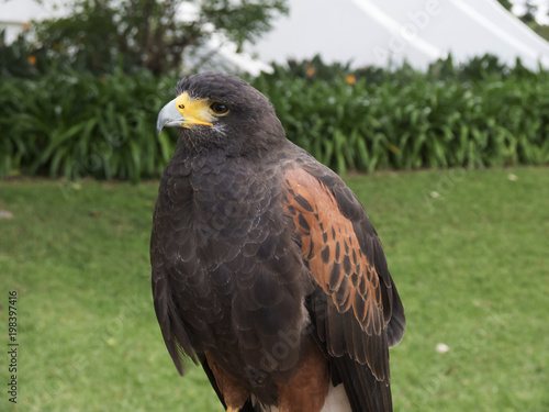 Harris Hawk in the grounds of a luxury Hotel in Funchal Madeira Portugal