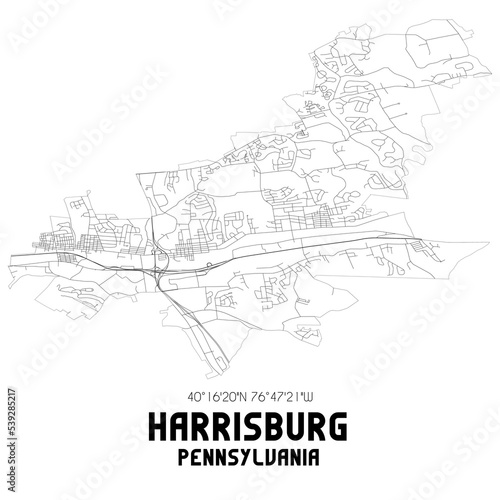 Harrisburg Pennsylvania. US street map with black and white lines.