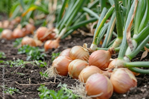 Harvest onions in the garden.
