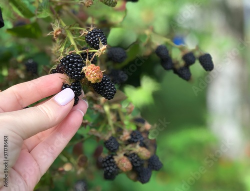 harvesting blackberries in the garden