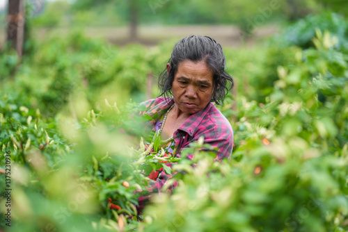 Harvesting chili peppers agricultural field rural environment close-up view nature's bounty