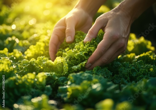 Harvesting Fresh Lettuce in Organic Garden - Sustainable Farming and Healthy Eating