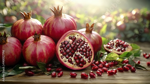 Harvesting juicy pomegranates orchard food photography natural setting close-up freshness and health benefits