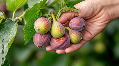 Harvesting ripe figs under the warm sun in a lush orchard