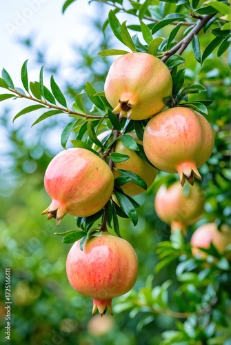 Harvesting ripe pomegranates in an orchard lush nature photography capturing vibrant fruits