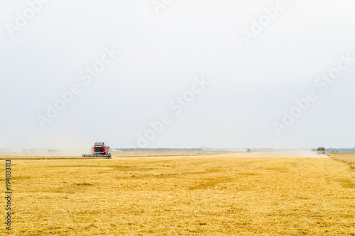 Harvesting wheat with a combine harvester.