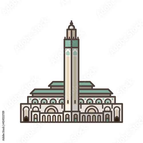 Hassan II mosque at Casablanca isolated vector Illustration for Casablanca Day on November 26