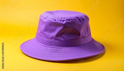 hat, bucket, purple, yellow, brim, crown, fashion, accessory, vibrant, contrast, modern, playful, bold, minimal, clean, stylish, headwear, casual, trendy, soft, curved, design, composition, isolated,